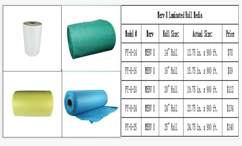 Laminerad luftfiltermedia på rulle tillverkad av 100 % polyesterfiber med expanderad nätlaminering för veckade ändamål. Detta media är lämpligt för tillverkning av veckade eller vikbara luftfilter för luftkonditioneringsapparater i hem, kommersiella och industriella tillämpningar. Alla våra media är tillverkade av 100 % polyester och innehåller inga kemikalier. Om ditt företag tillverkar veckade luftfilter behöver du vårt laminerade media.